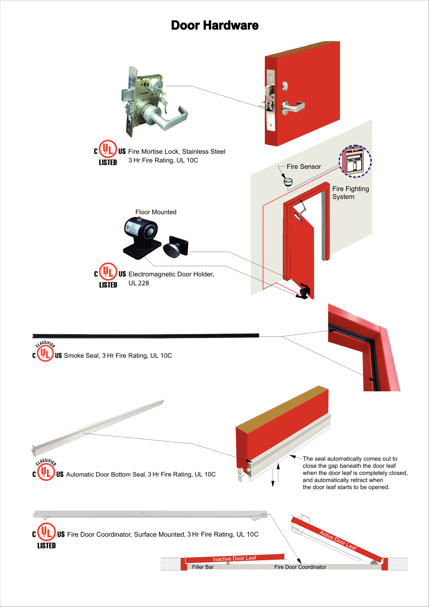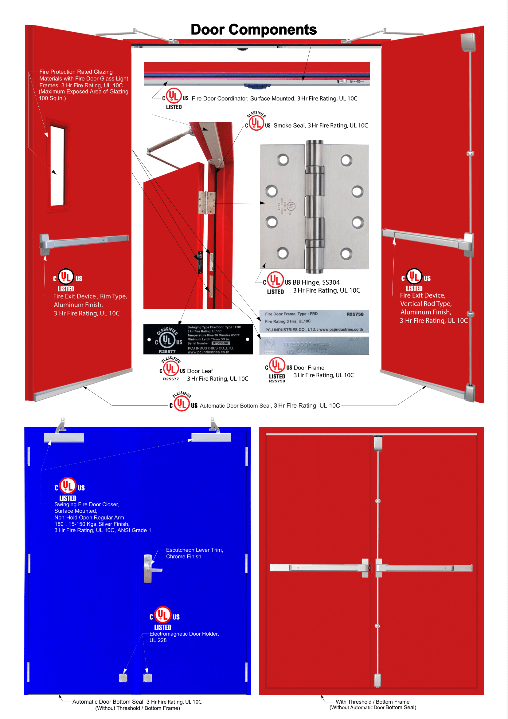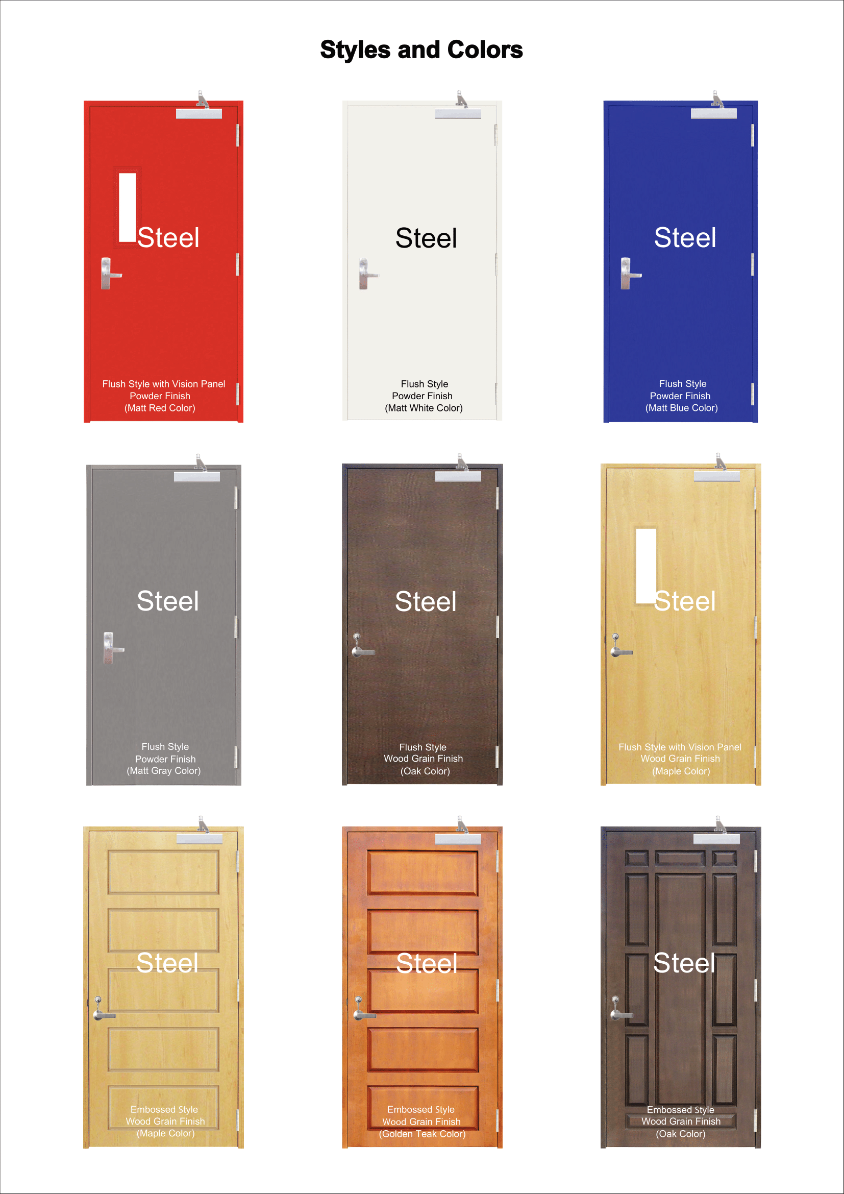 Asian International provide and and distribute Fire Steel Doors, 3 Hr Fire Rating, ANSI/UL 10C & CAN/ULC-S104. Various type, styles, finish : Single Doors, Double Doors, Flush Doors, Flush with Vision Panels, Embossed Doors, Powder Finish, Wood Grain Finish as well as various types of hardware are available upon request. 2 Hr Fire Steel Doors and Non-Fire Steel Doors are also available upon request to fulfill most requirements.