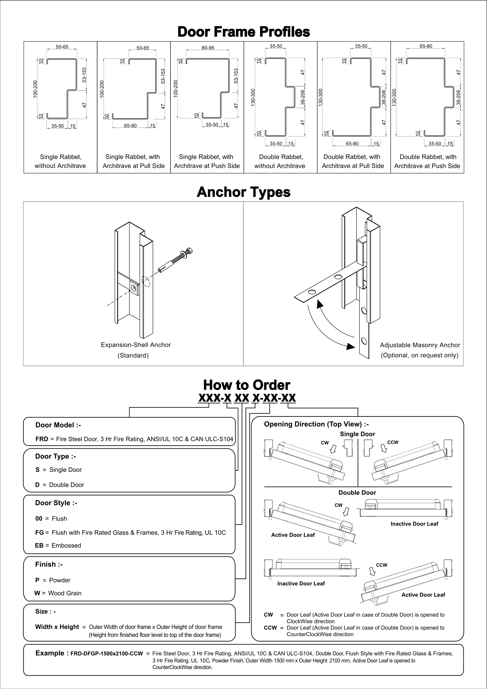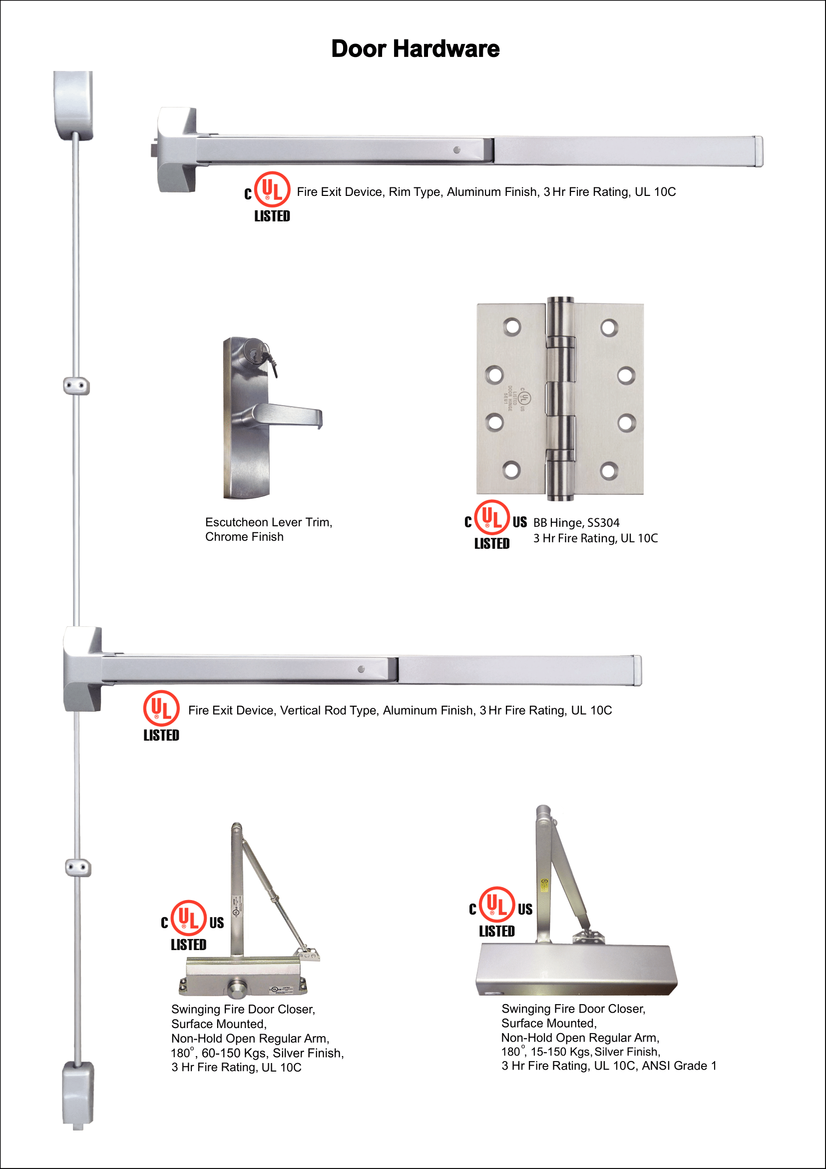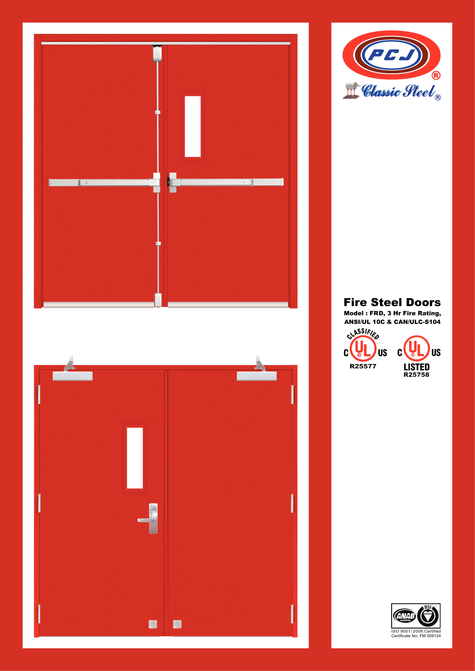 Asian International provide and and distribute Fire Steel Doors, 3 Hr Fire Rating, ANSI/UL 10C & CAN/ULC-S104. Various type, styles, finish : Single Doors, Double Doors, Flush Doors, Flush with Vision Panels, Embossed Doors, Powder Finish, Wood Grain Finish as well as various types of hardware are available upon request. 2 Hr Fire Steel Doors and Non-Fire Steel Doors are also available upon request to fulfill most requirements.