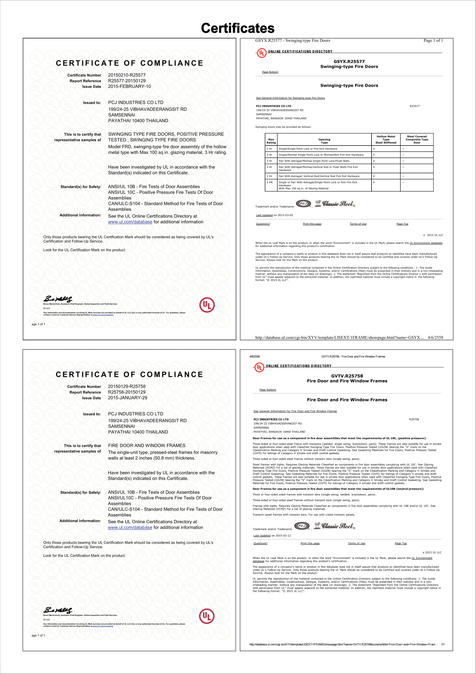 PCJ INDUSTRIES has delivered high quality products to all regions of Thailand and many countries around the world. We have been known throughout the construction field for high quality products and reliable services. With leading technologies on product lines, team of professional in this field, certificates from Underwriter Laboratories, British Standards Institution, Standards Australia, Air Diffusion Council, Thai Industrial Standards Institute, and quality management system ISO 9001:2008, you can put your trust in our products and services. Our objective is to ensure fast delivery of exceptional products to let your projects complete as planned without interruption.